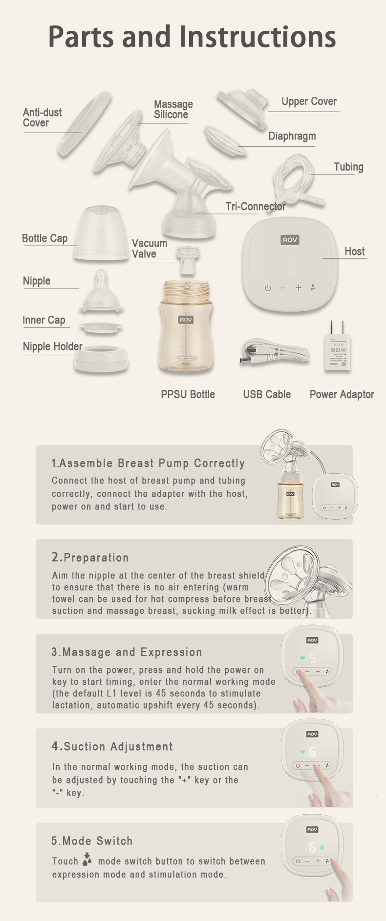 Compact, Lightweight and Portable Massage and Expression Modes Anti-Backflow Design, Close System Built-in Lithium Ion Battery Wide and Soft Silicone Massage Shield PPSU Bottles, BPA Free