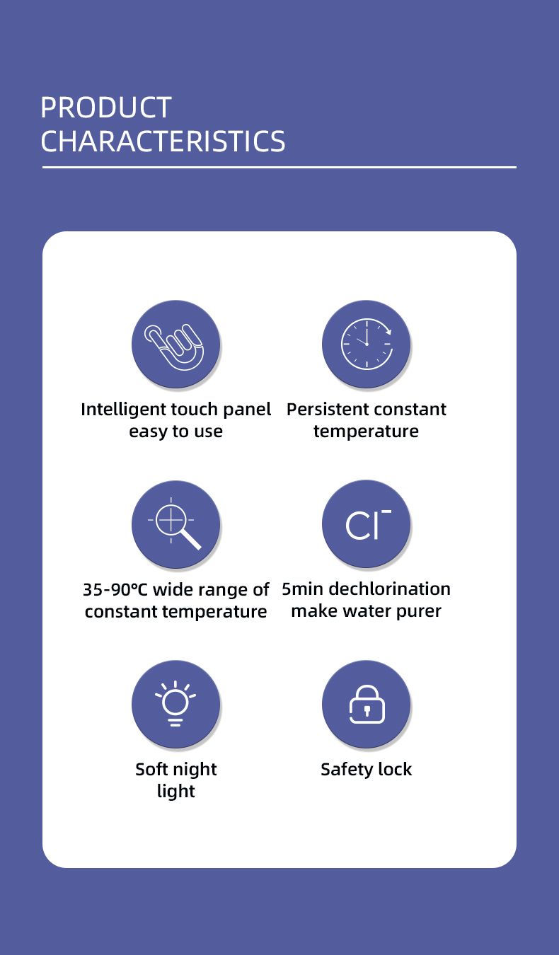 Microcomputer intelligent control, accurate temperature control Safe child lock function to prevent baby from accidentally touching Night light function 1300ML capacity