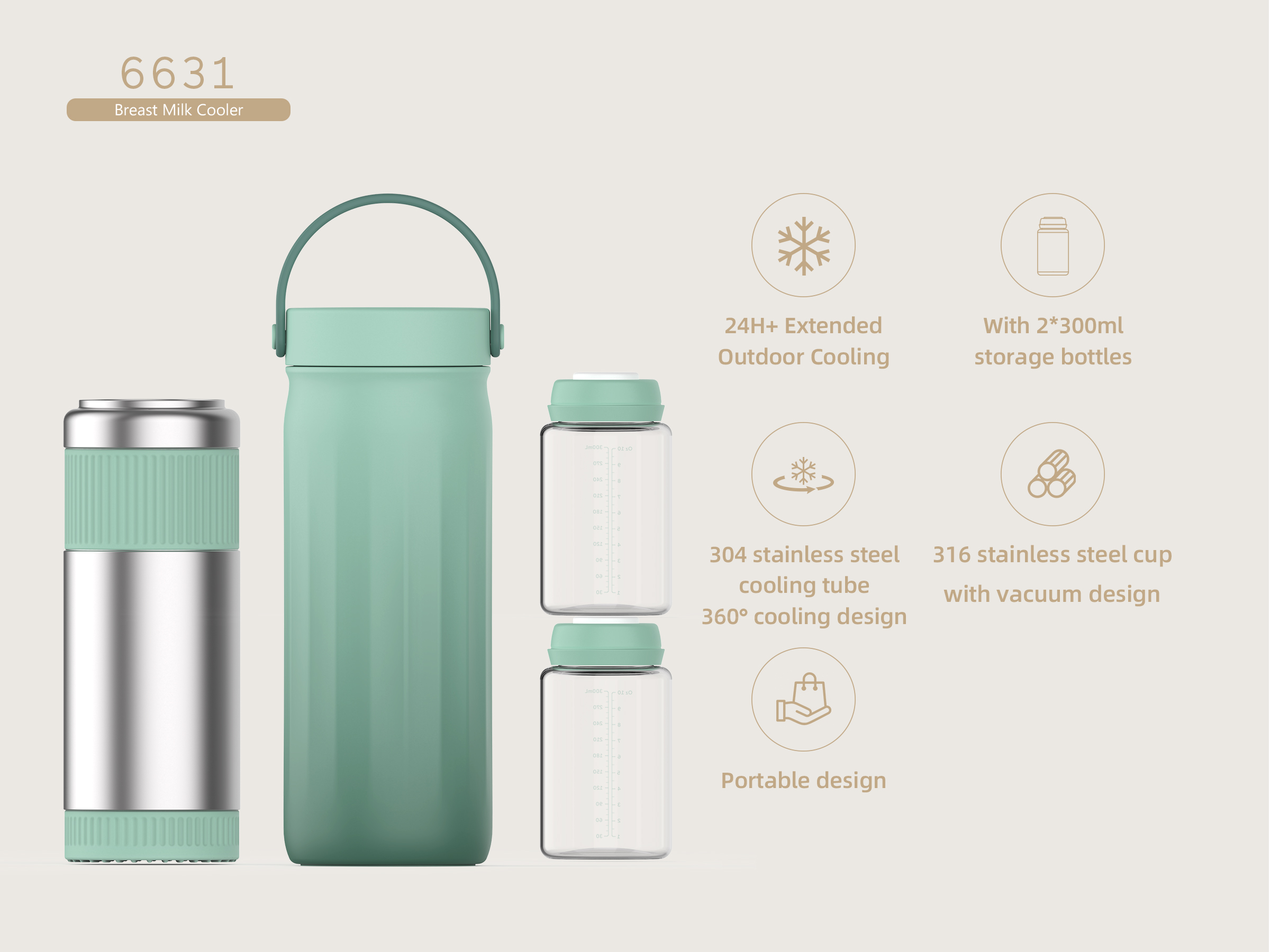 24H+ ExtendedOutdoor Cooling;With 2*300mlstorage bottles;304 stainless steel cooling tube 360° cooling design;316 stainless steel cup cupcooling tubewith;Portable design.