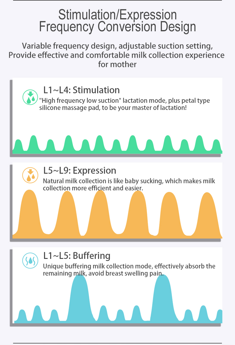Black LED Touch Control Panel Massage and Expression Modes Anti-Backflow Design, Close System Battery and USB Power Supply Wide and Soft silicone Massage Shield Food Grade Material, BPA Free