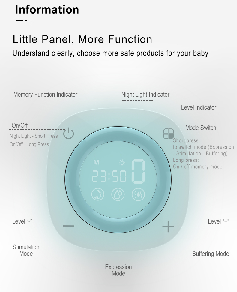 Gentle Night Light Stimulation, Expression, Bionic Modes Anti-Backflow Design, Close System Built-in Large Capacity Lithium Battery Detachable Breast shield, Convenient for Use PPSU Bottles, BPA Free