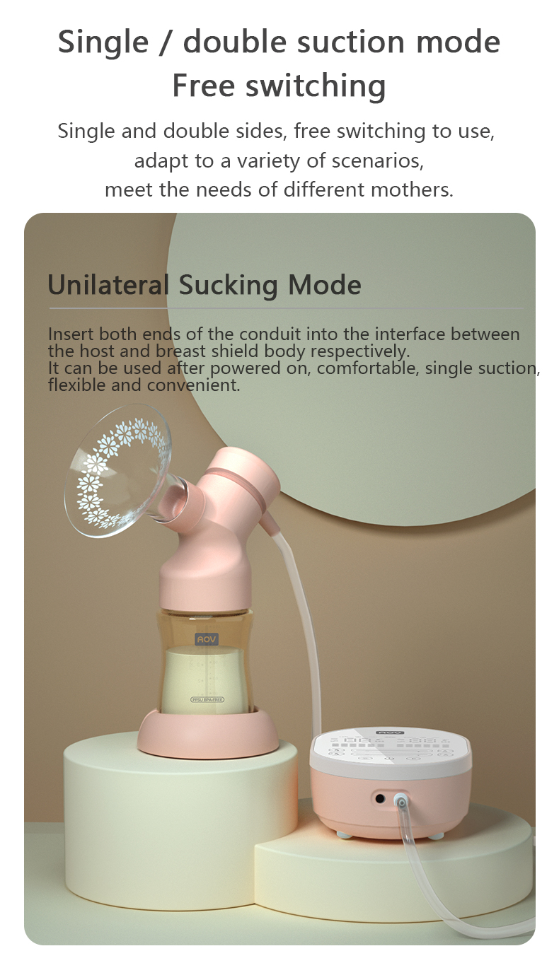 Dual motors, can control single or double sides separately Four working modes: massage, expression, bionic, shock suction Simulate real sucking of baby, easily collect milk Built in large capacity lithium battery Anti-backflow design, close system
