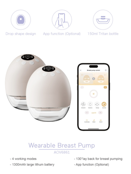 Simulates a baby's natural nursing rhythm, making milk expressioneffortless for moms;Skin-Friendly Silicone Breast Shield;Get comfortable while pumping-lean back in your seat at an angle of upto 130 degrees;With APP;4 Working Modes & 9 Suction Levels;Smart Memory Function;Lithium Battery Power Supply