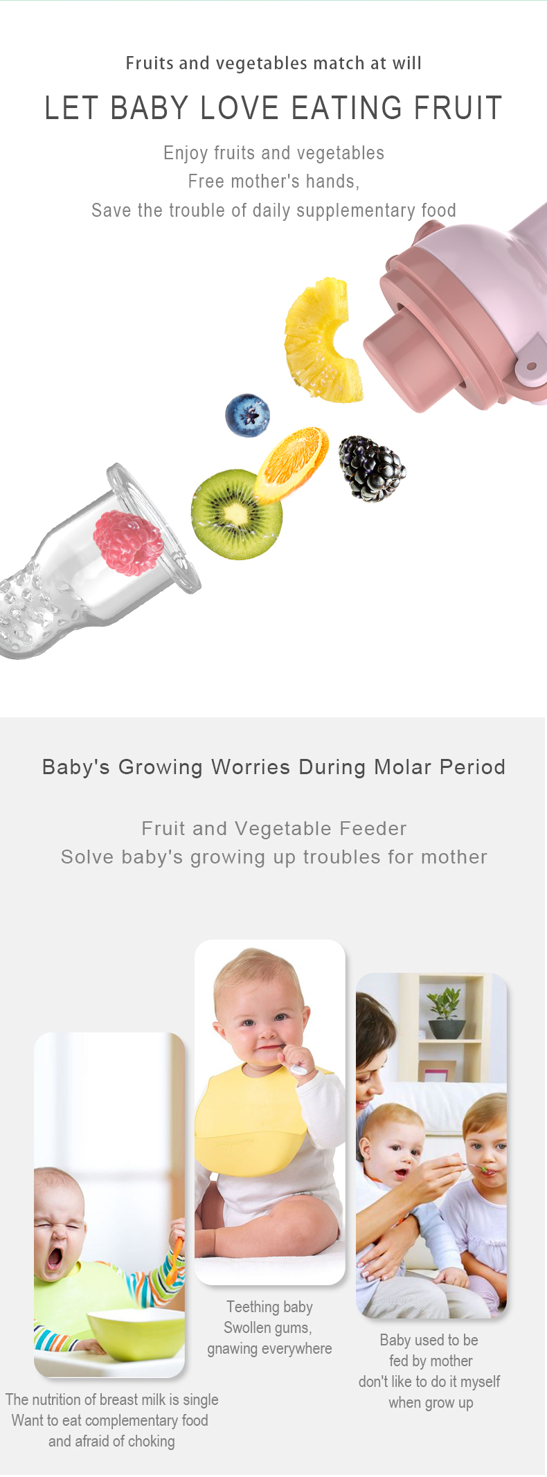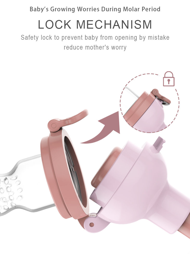 Spiral Propulsion Style Prevent Baby Choking Food-Grade Material BPA Free, Phthalate Free Easy Grip Handle Non-slip, Ergonomi Lock Slap Mechanism Prevent to be opened Easy To Use, Clean Storage 3 in 1 Multi-Purpose Feeder + Pacifier+ Teether