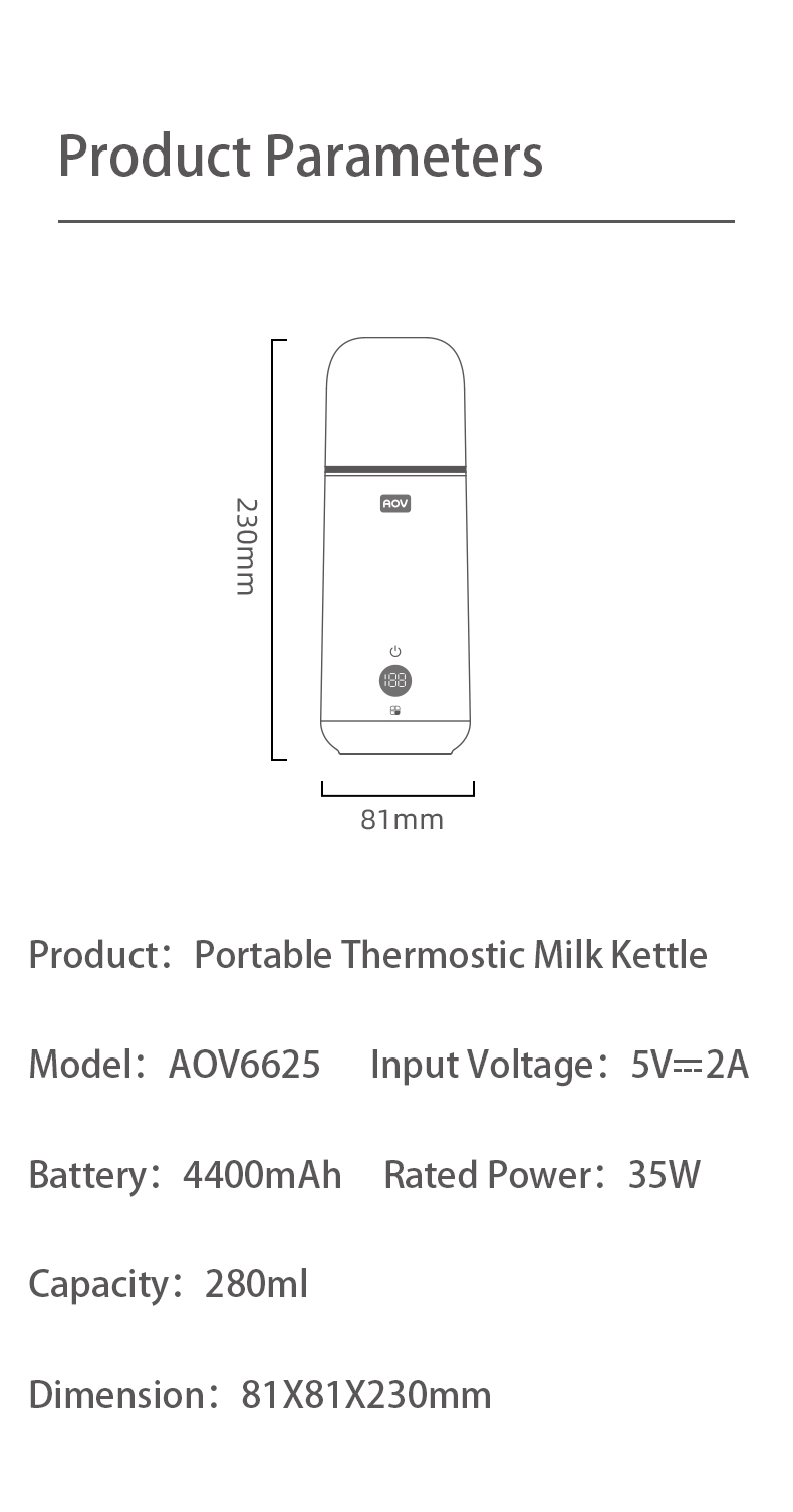AOV6625 Portable & Rechargeable Thermostatic Kettle